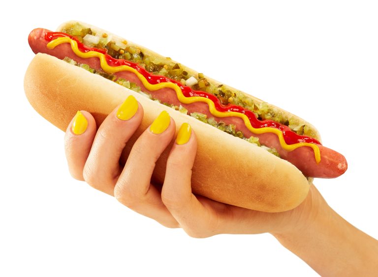 Photographie culinaire professionnelle d’un empilement de saucisses grillées piquées sur une fourchette, réalisée par Jazz Photo, studio de photographie commerciale à Boucherville.