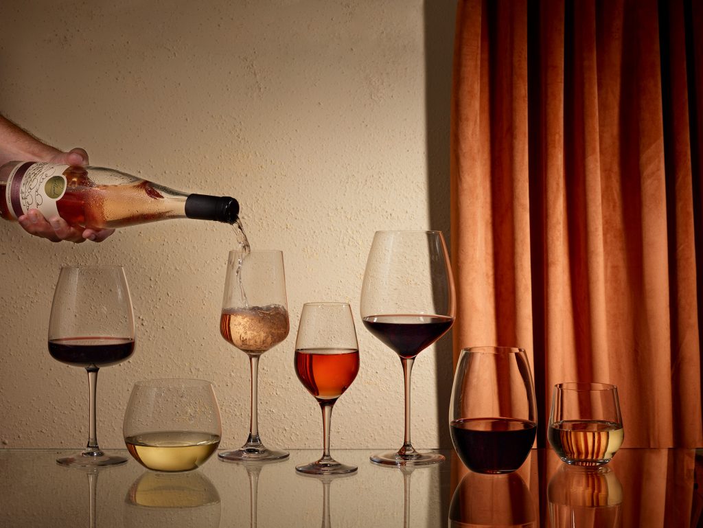 Photographie culinaire professionnelle de deux cocktails sans alcool à la sangria garnis de tranches d’orange et de glace dans des verres ballons, réalisée par Jazz Photo, studio de photographie commerciale à Boucherville.